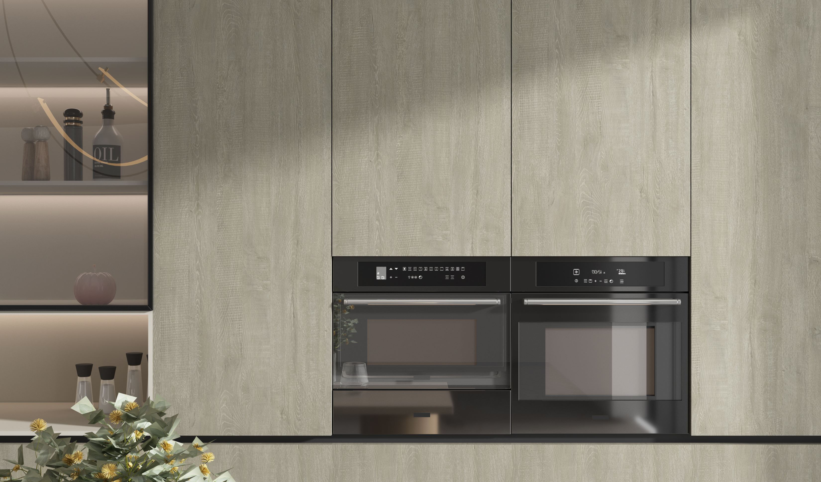 A vintage oak veneer shaped by time. Weathered textures reveal clear pores, bold cathedrals, and preserved cracks and knots, creating a rich, natural depth. Its solid, authentic presence suits large-scale use in residential and workspaces.