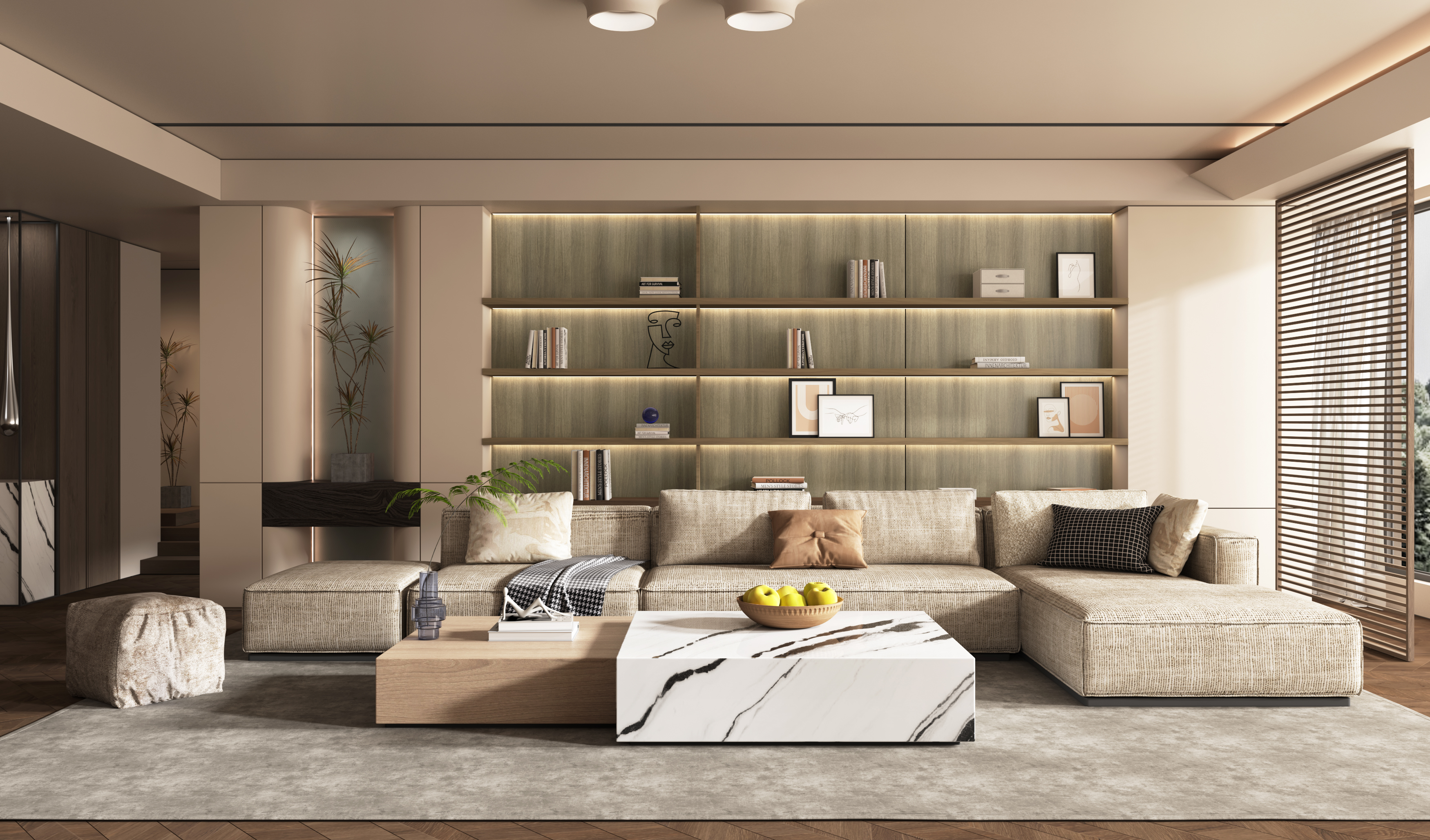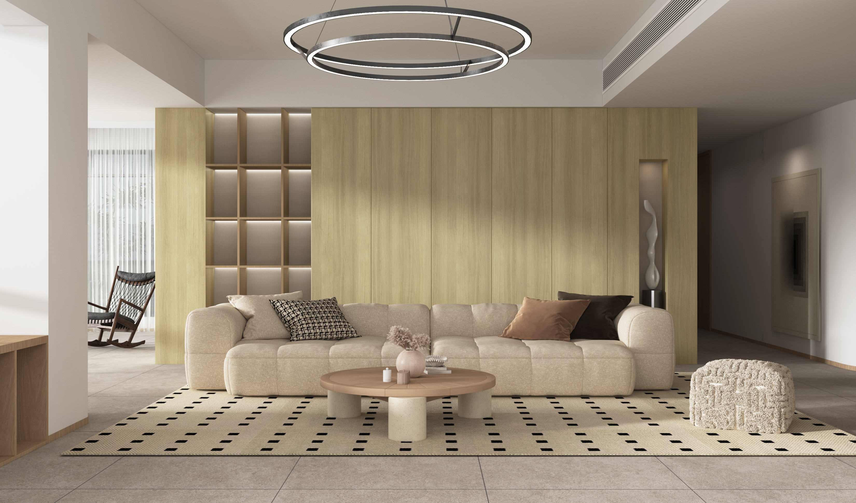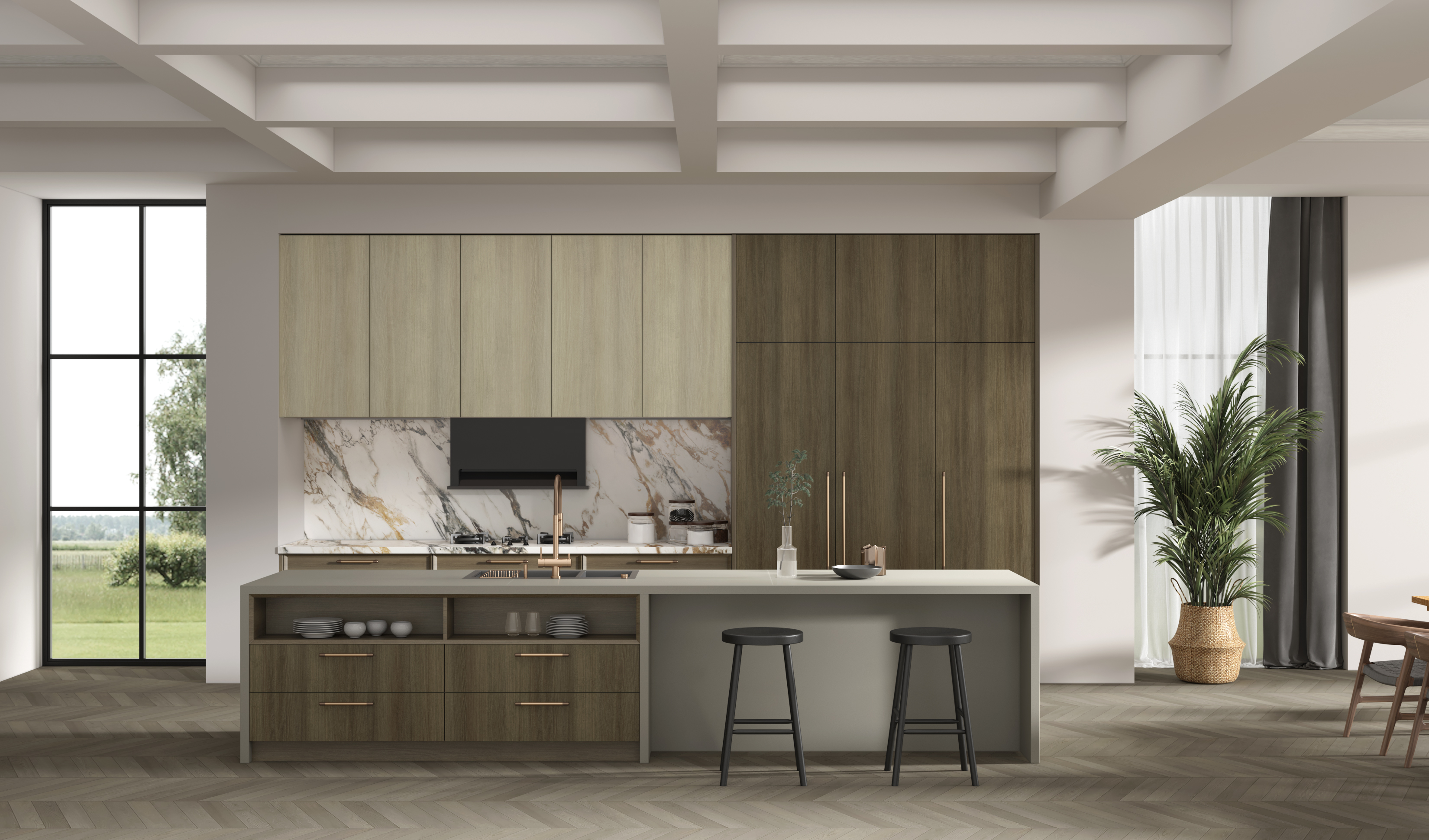 This oak finish achieves authentic detail, with clean straight structures layered by flowing cathedrals. Subtle pores and tonal shifts recreate the natural texture of real oak, balancing modern aesthetics with a warm, honest, and organic character for interior spaces.