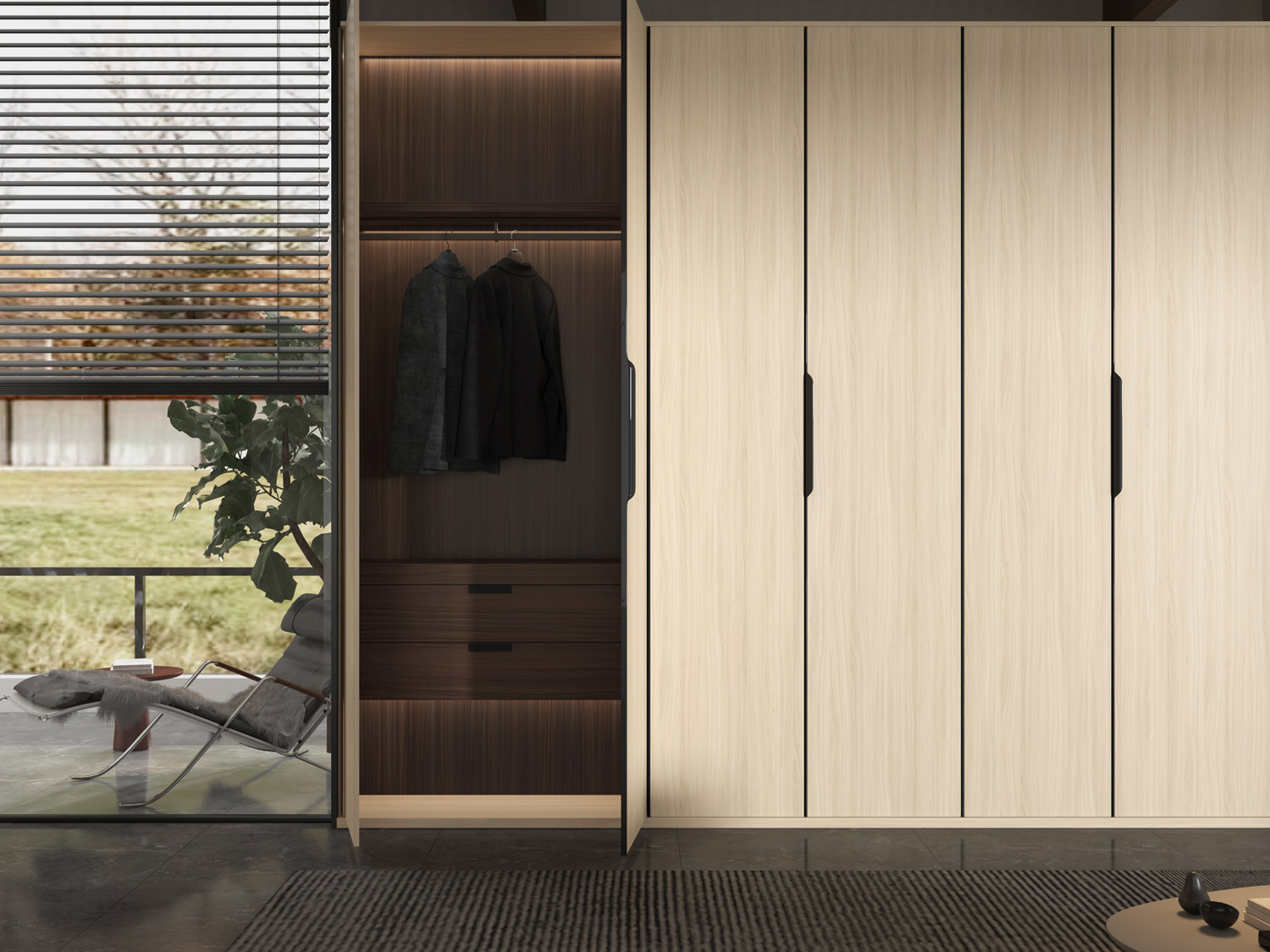 Interwoven straight and cut cathedral create delicate patterns. The straight lines are smooth, while the cathedral lines form graceful curves and waves, offering an artistic visual effect. Cherry wood’s unique “freshness” adds a gentle touch to the space. It excels in making cabinet doors, bodies, or back panels.