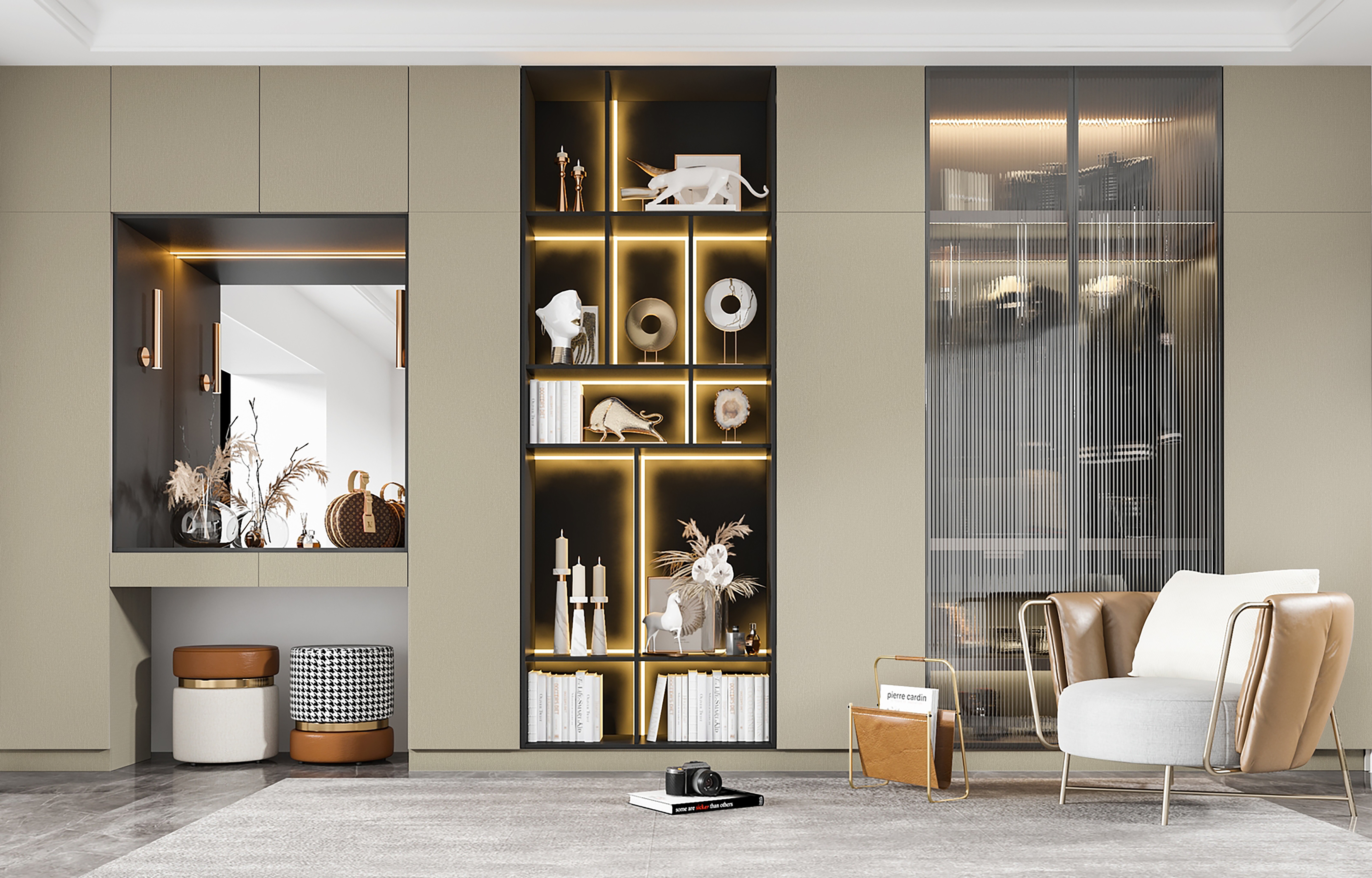 Inspired by interwoven tech-fabric textures, this design creates a subtle 3D effect. Layered threads form refined depth and softness, while warm light tones gently enhance the surface—bringing quiet warmth and elegance to modern, New Chinese, or Wabi-Sabi cabinetry.