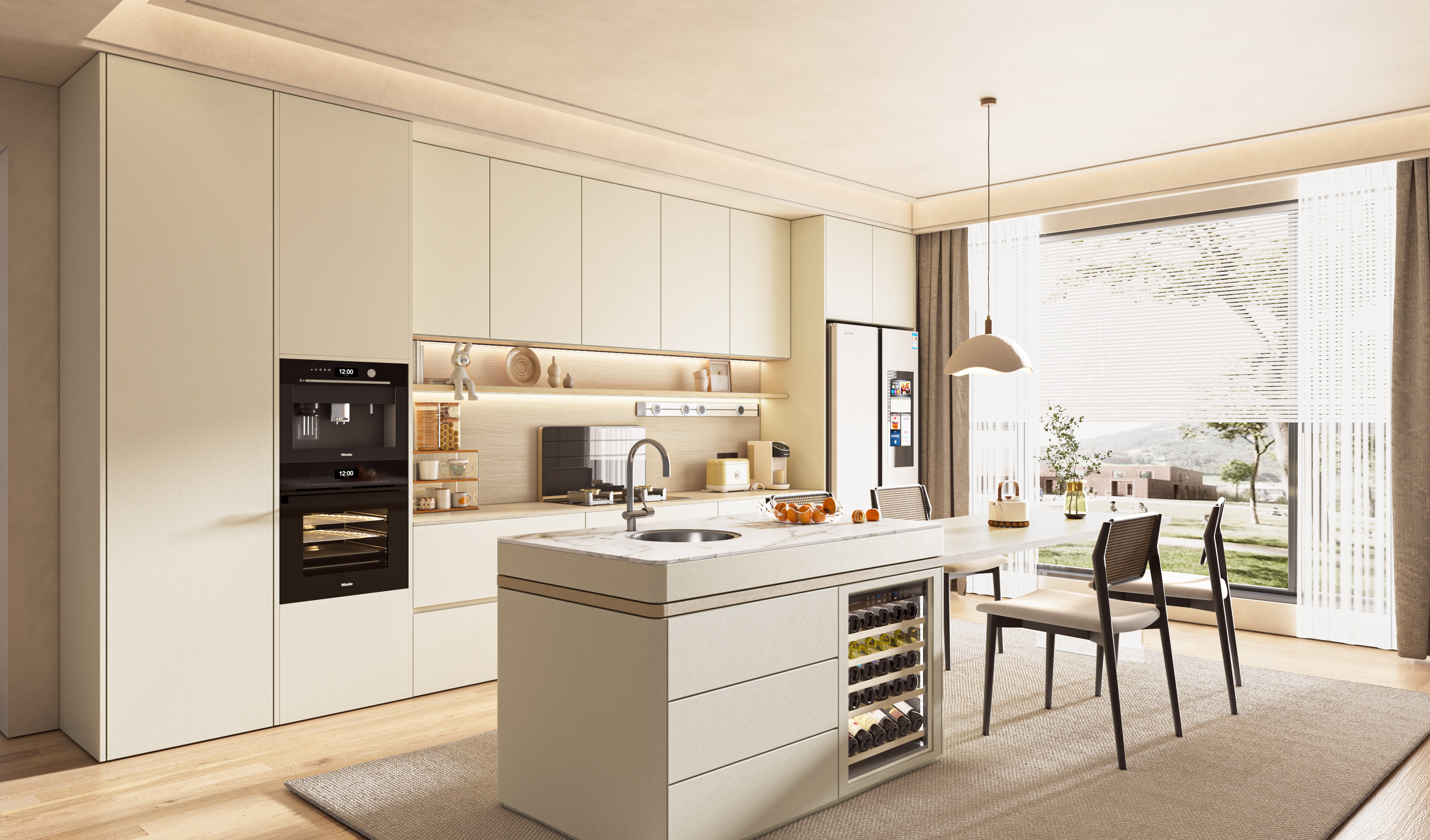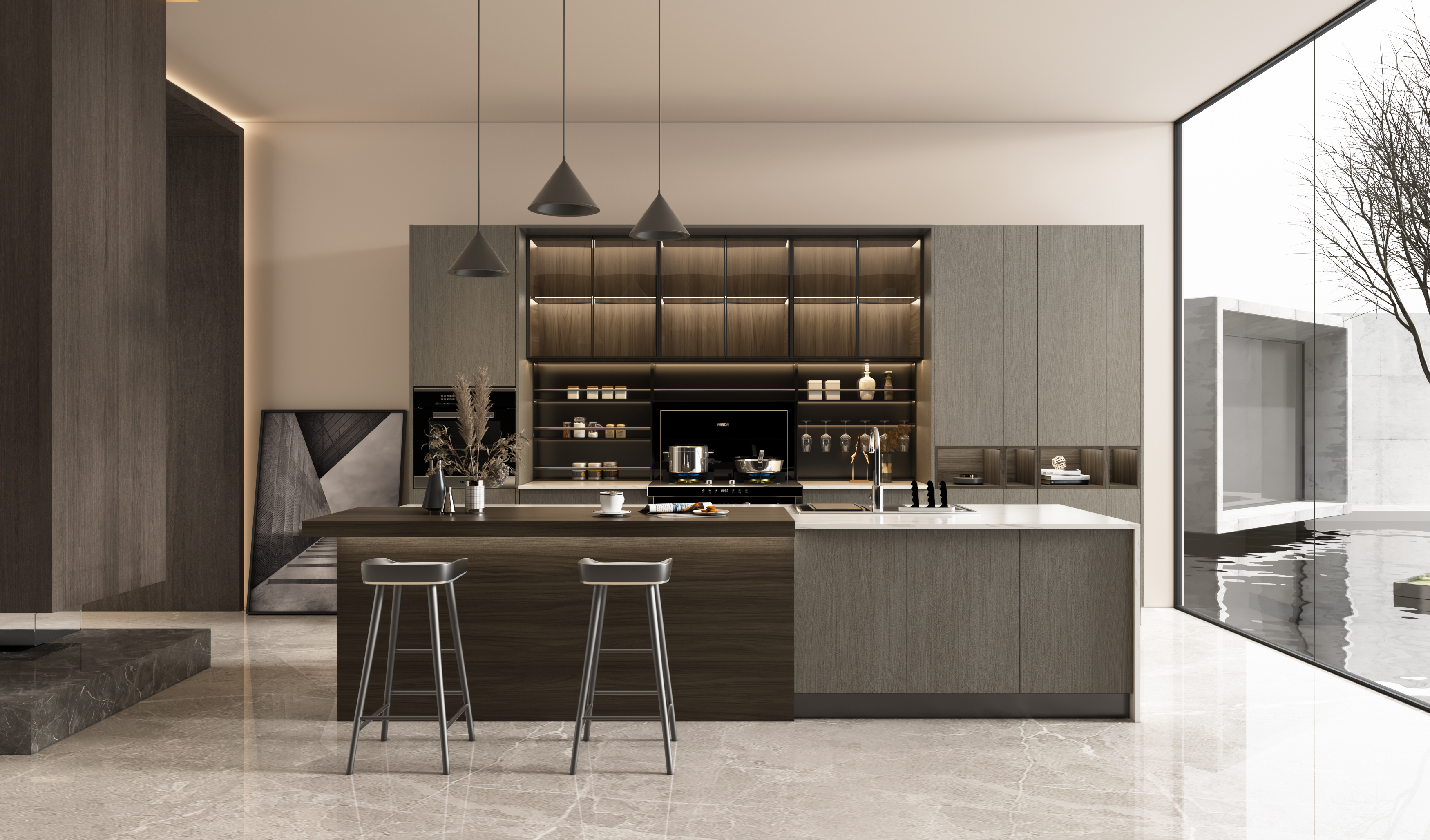 Inspired by natural Nice wood veneer, this surface features softly curved grain instead of classic straight lines. Subtle pearlescent particles enhance depth and luster, while warm natural tones create a calm, refined rhythm—ideal for cabinetry and interior panels.