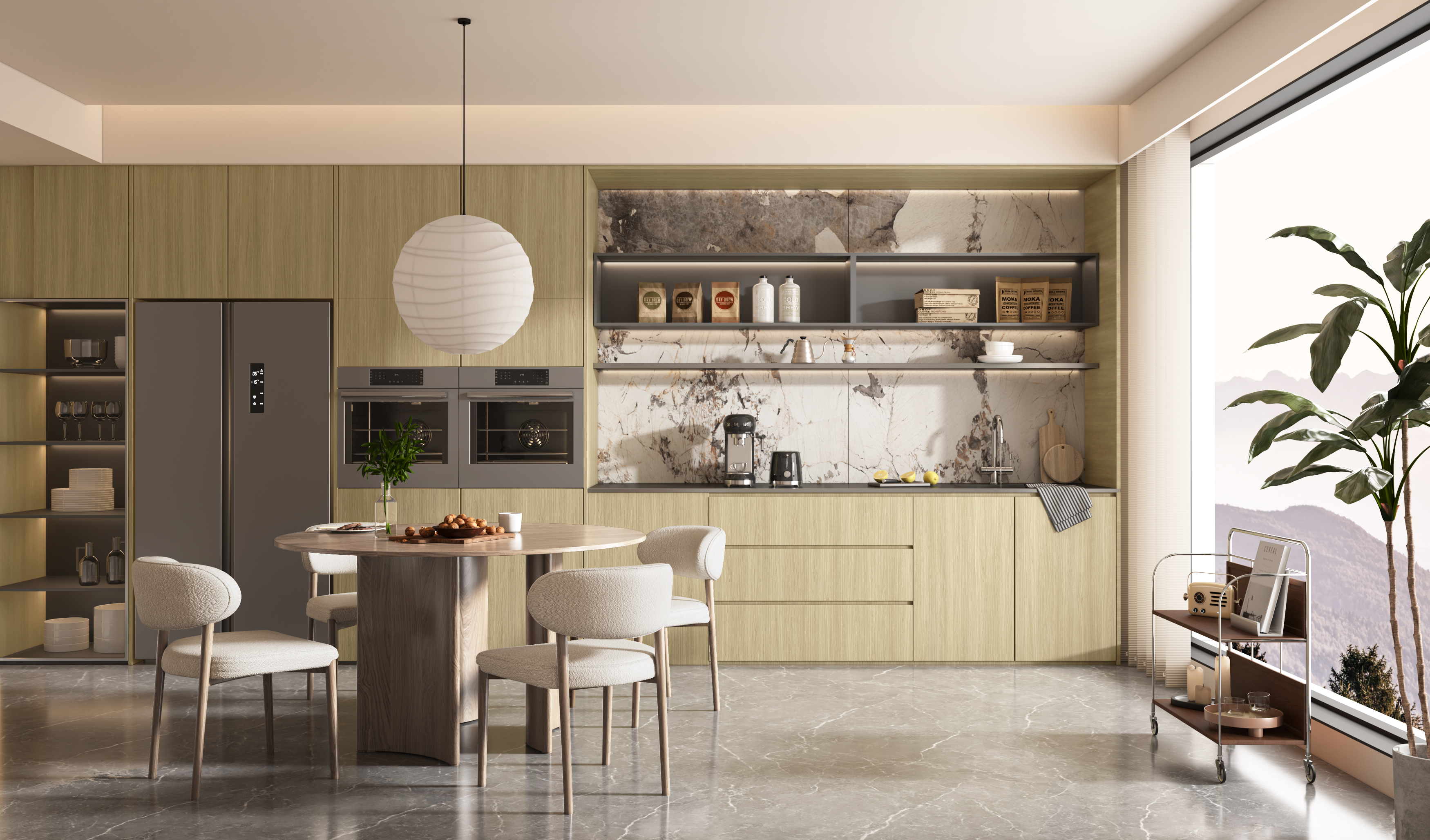 Inspired by hickory wood, this veneer combines natural straight grains with subtle half-mountain textures, creating a delicate and refined design. The soft, neutral colors reflect the desire for simplicity and nature, making it perfect for modern, minimalistic interiors.