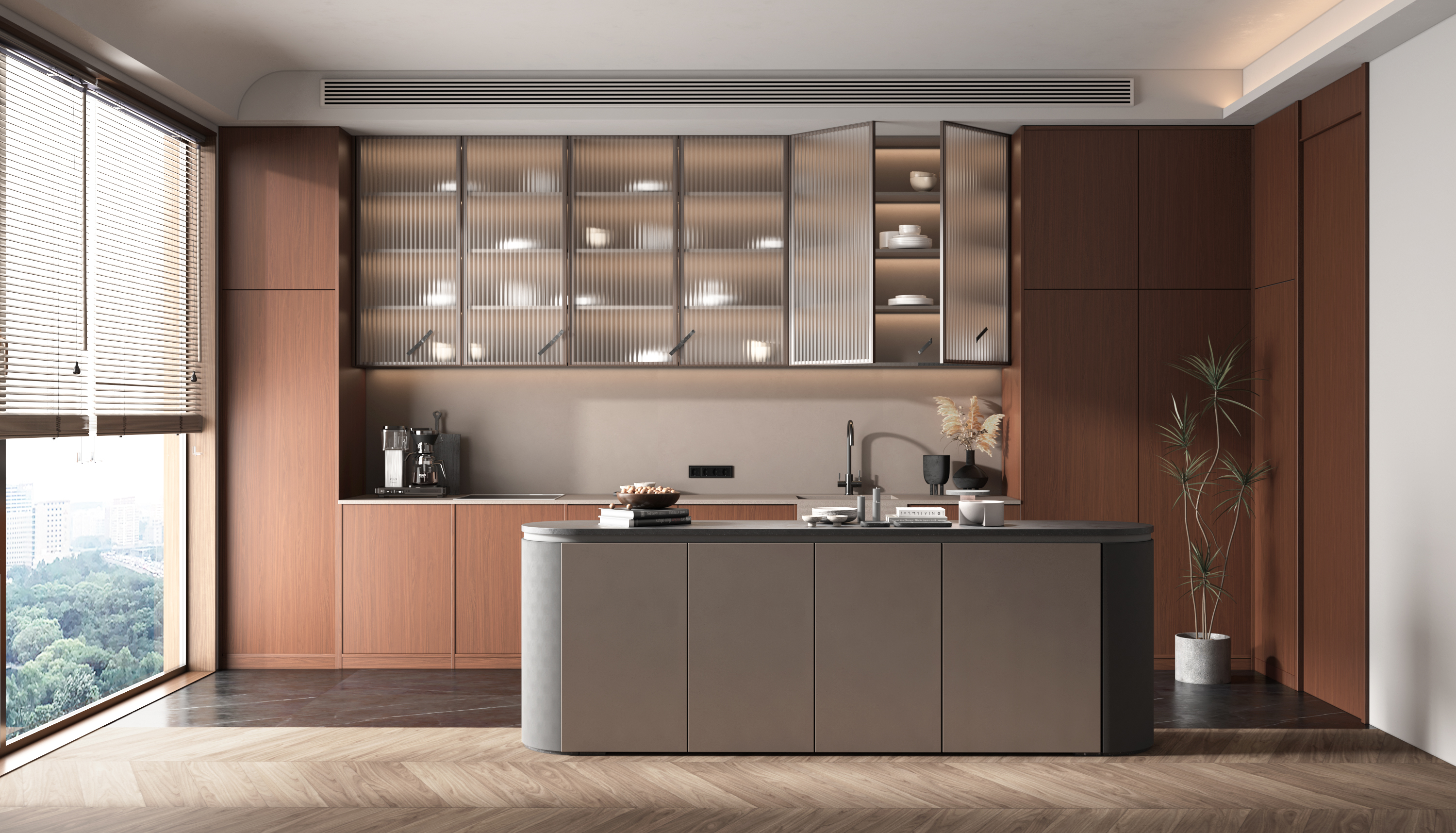 Inspired by rosewood, a key material in Qing Dynasty furniture, this design features delicate, varied textures with both straight lines and graceful curves. Its warm, subtle tones create a simple, elegant, and serene atmosphere, perfect for traditional Chinese spaces.