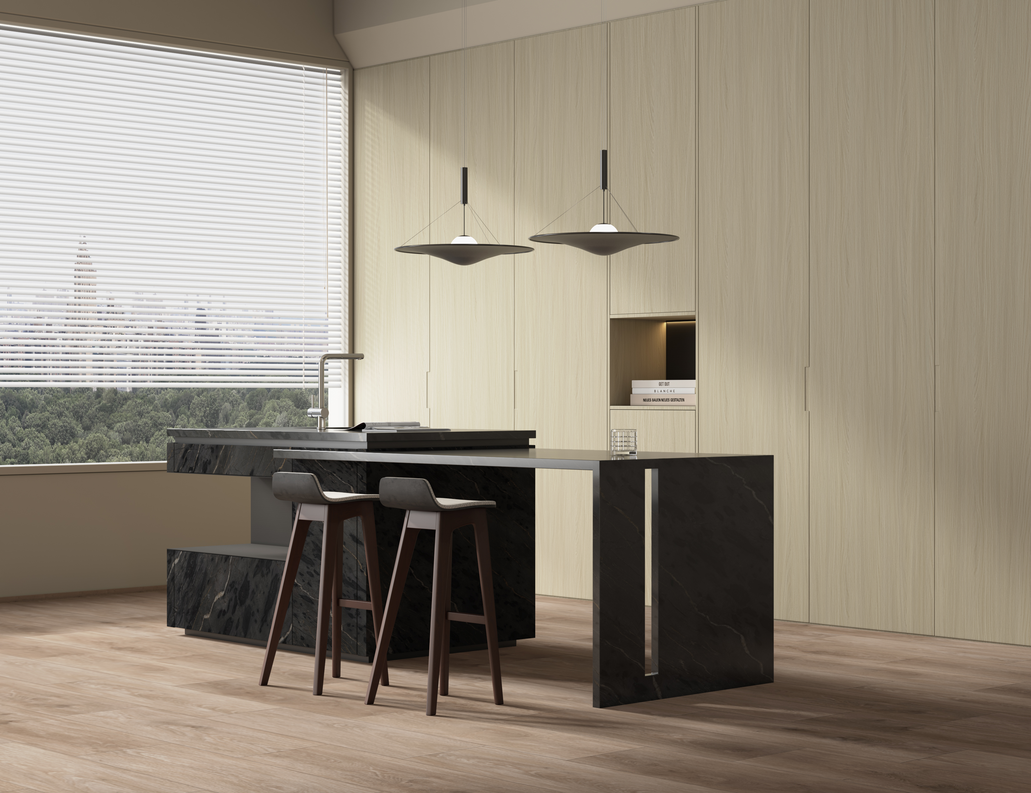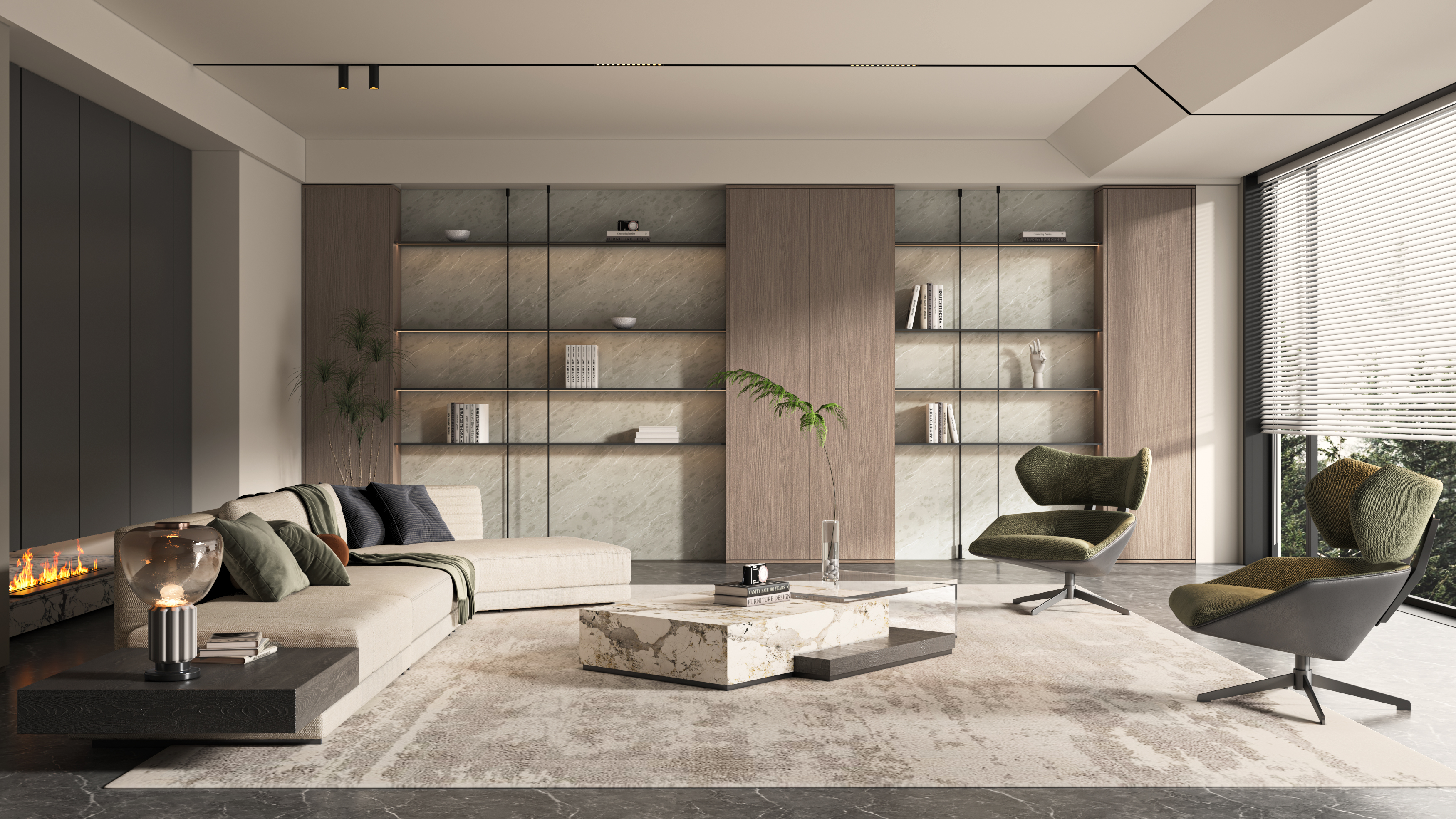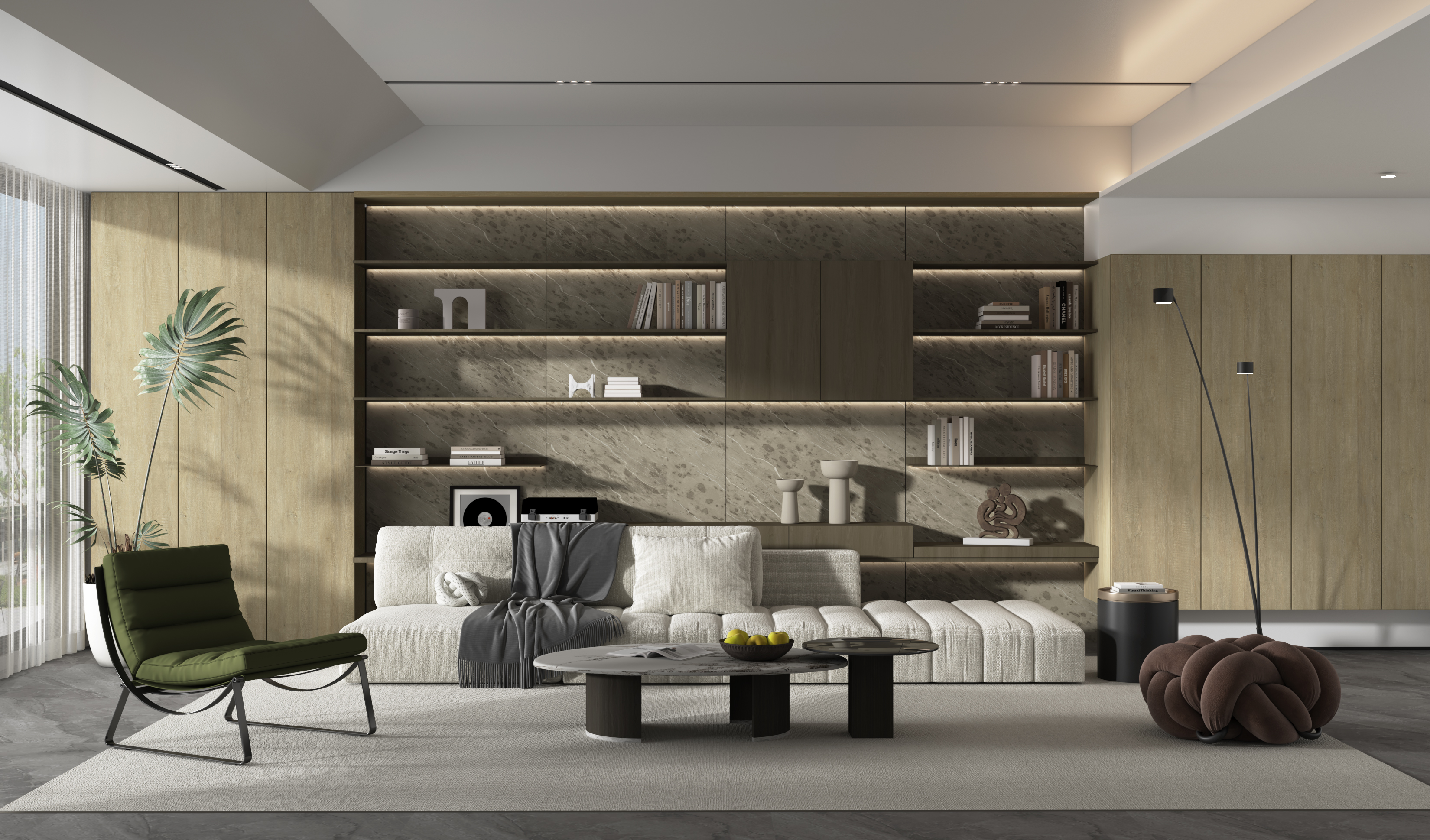 A unique marble-inspired design, replicating natural stone textures with artistic finesse. Featuring delicate white veining and dark mineral spots, it creates a natural, immersive effect, perfect for cabinets, countertops, and backsplashes, infusing spaces with vibrant, earthy elegance.