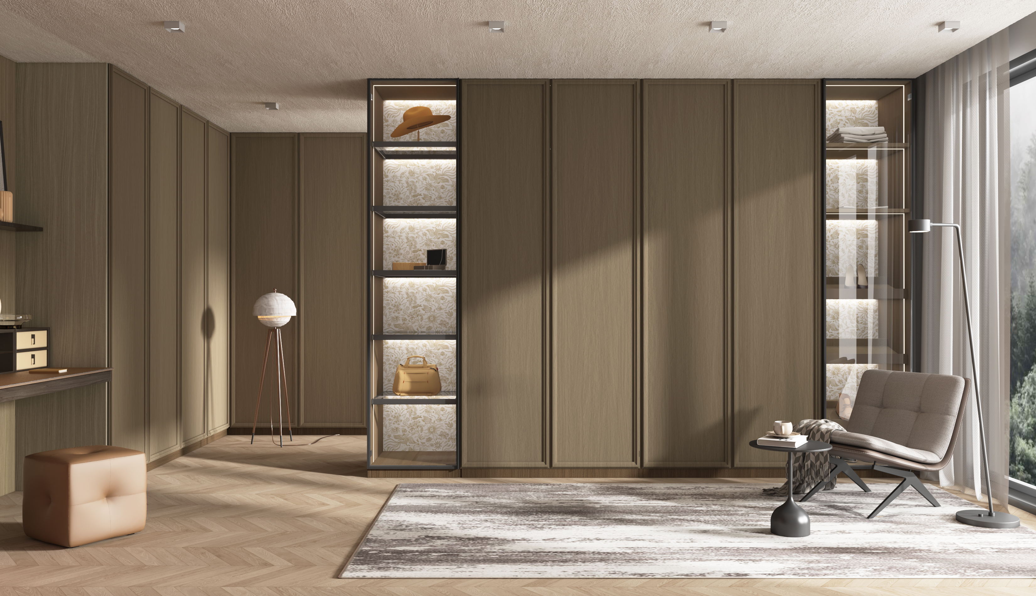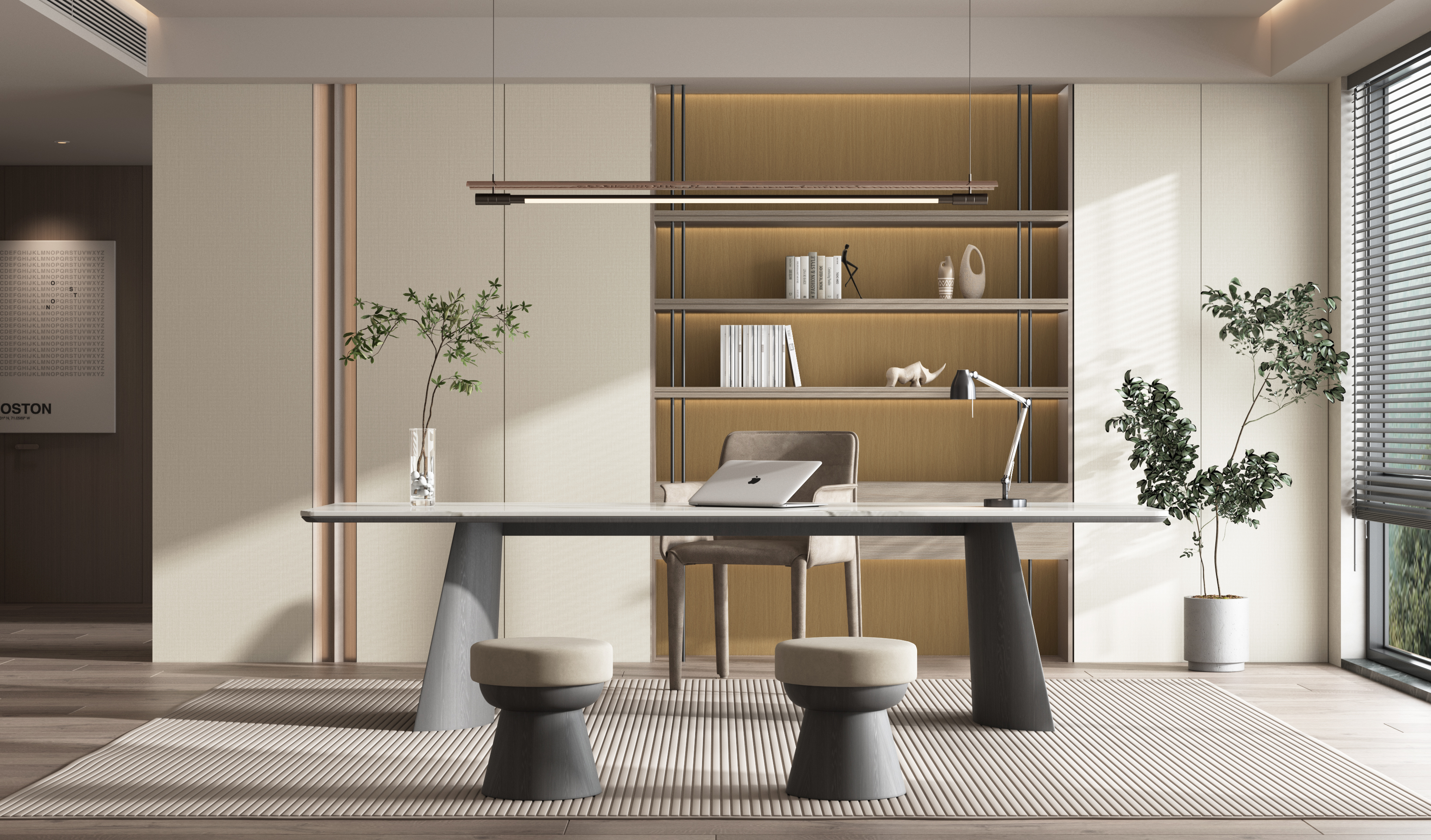 Curved half-cathedral grains contrast with clean straight lines, adding movement and visual depth. Low-saturation tones feel calm and adaptable, bringing understated artistry and refined character to modern interiors.