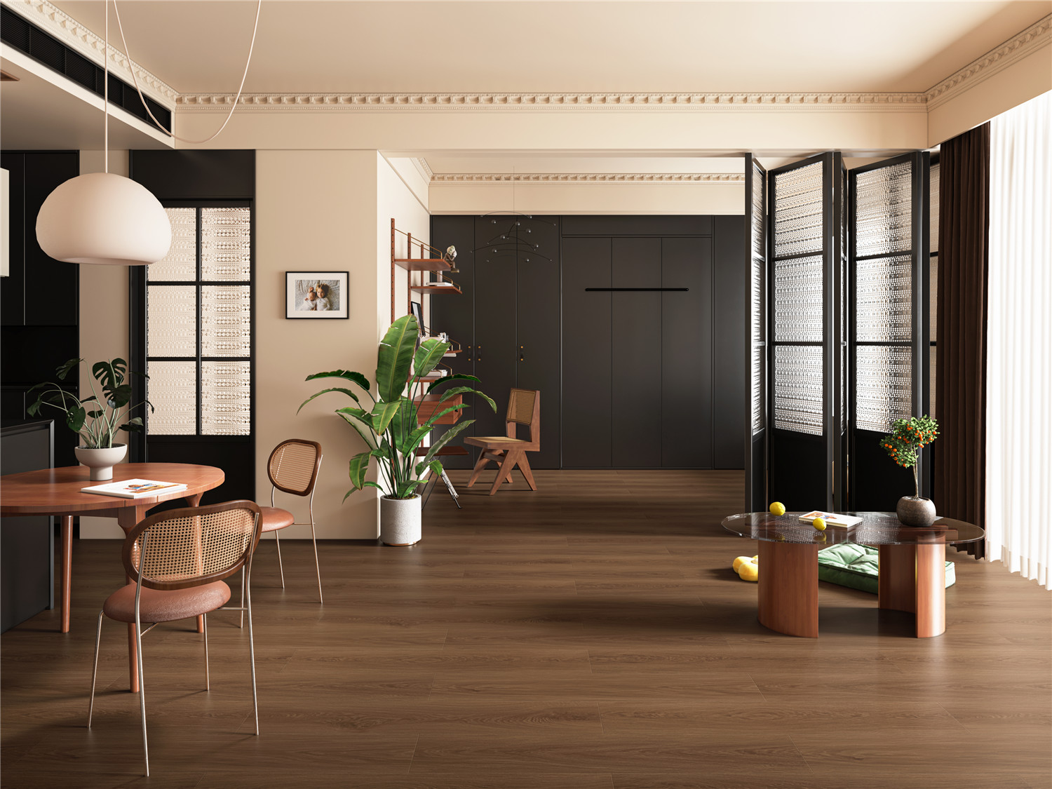 The texture is well-proportioned in its curvature and straightness. The mountain-like patterns are layered one upon another, resembling the undulating peaks and ridges of mountains, giving a sense of ethereality. The texture layers are three-dimensional, and the patches of knots scattered among them restore the natural texture of the wood. These lively knots are evidence of vitality, making the living space full of vitality and artistic charm.