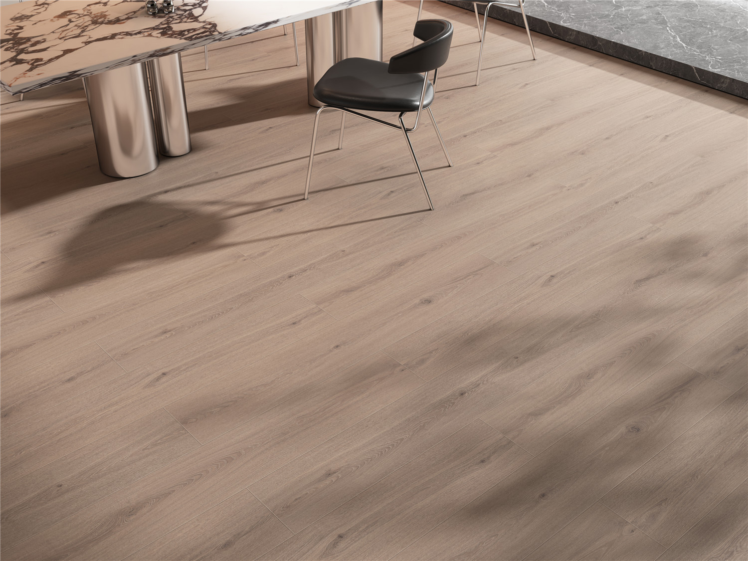 The oak wood grain is well-balanced in its texture, with a rough yet refined look. Oak flooring skillfully incorporates the mountain-shaped wood grain and natural knots and blemishes, complemented by tranquil and cozy tones. It is serene and beautiful, presenting a natural and composed demeanor even in an ordinary setting, thus adding a peaceful and comfortable atmosphere to the living space.