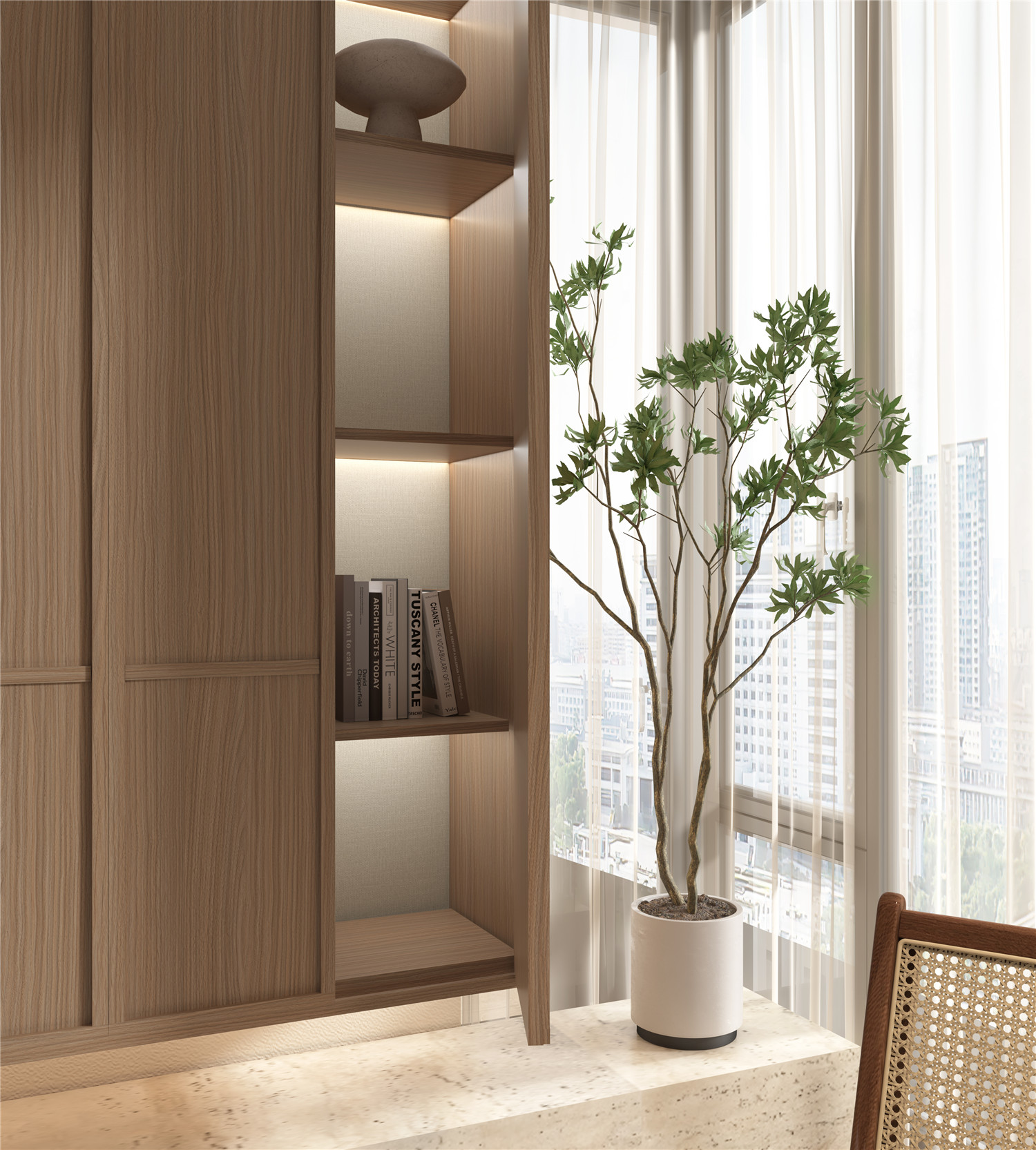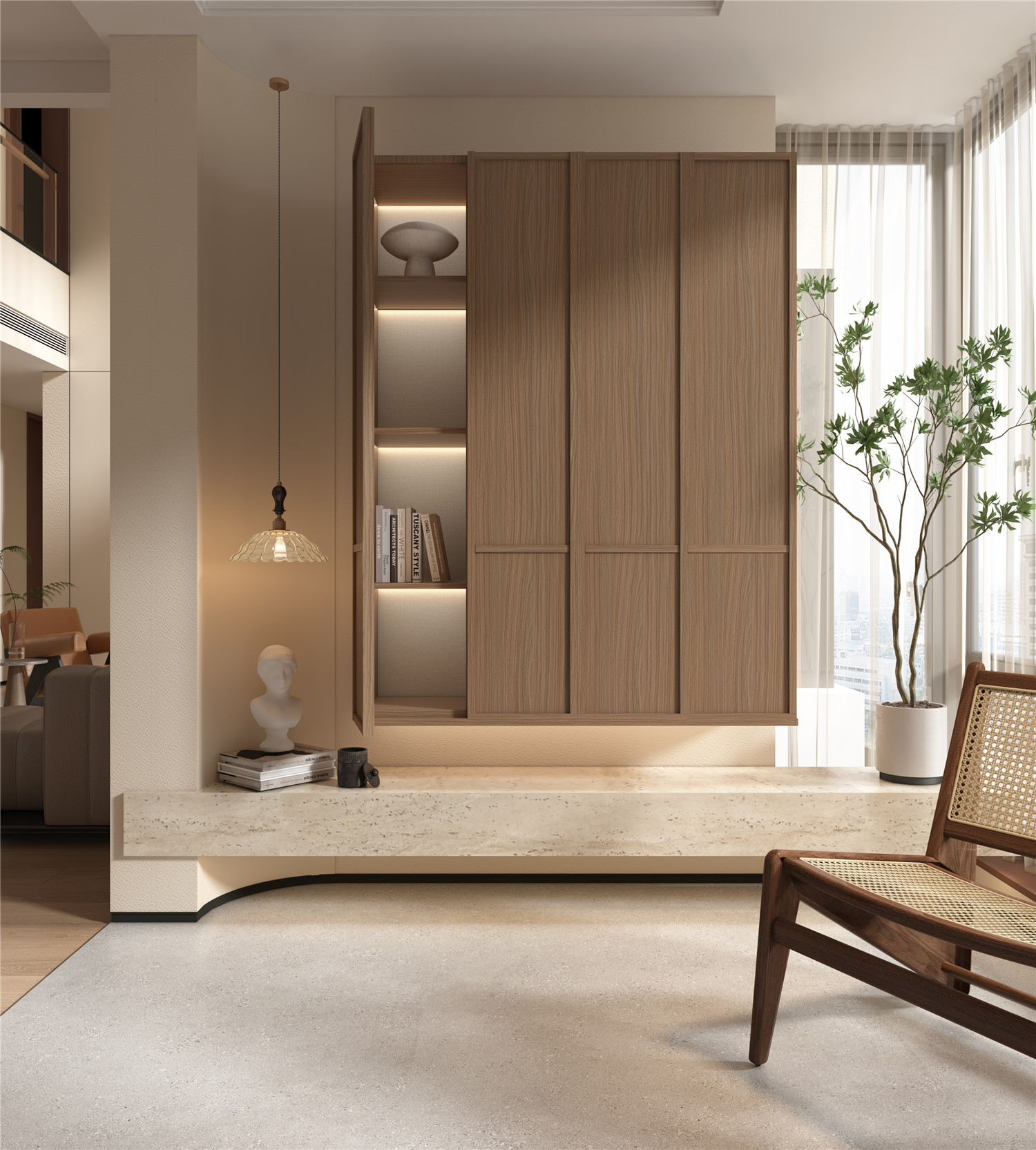 Inspired by walnut grains, semi - cathedral and straight grains alternate. The lines contrast sharply in depth, flowing gracefully, exuding elegance. Details preserve walnut's original texture, fully showing simplicity and naturalness, stylish and textured. This unique grain beauty reflects the homeowner's taste and upgrades the home's style. The smooth grains suit all decor styles.