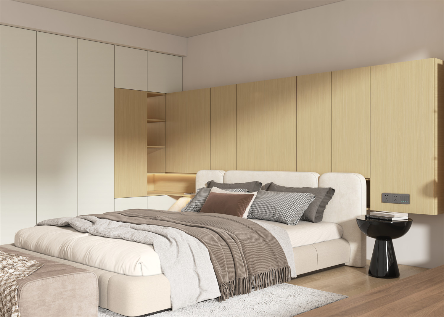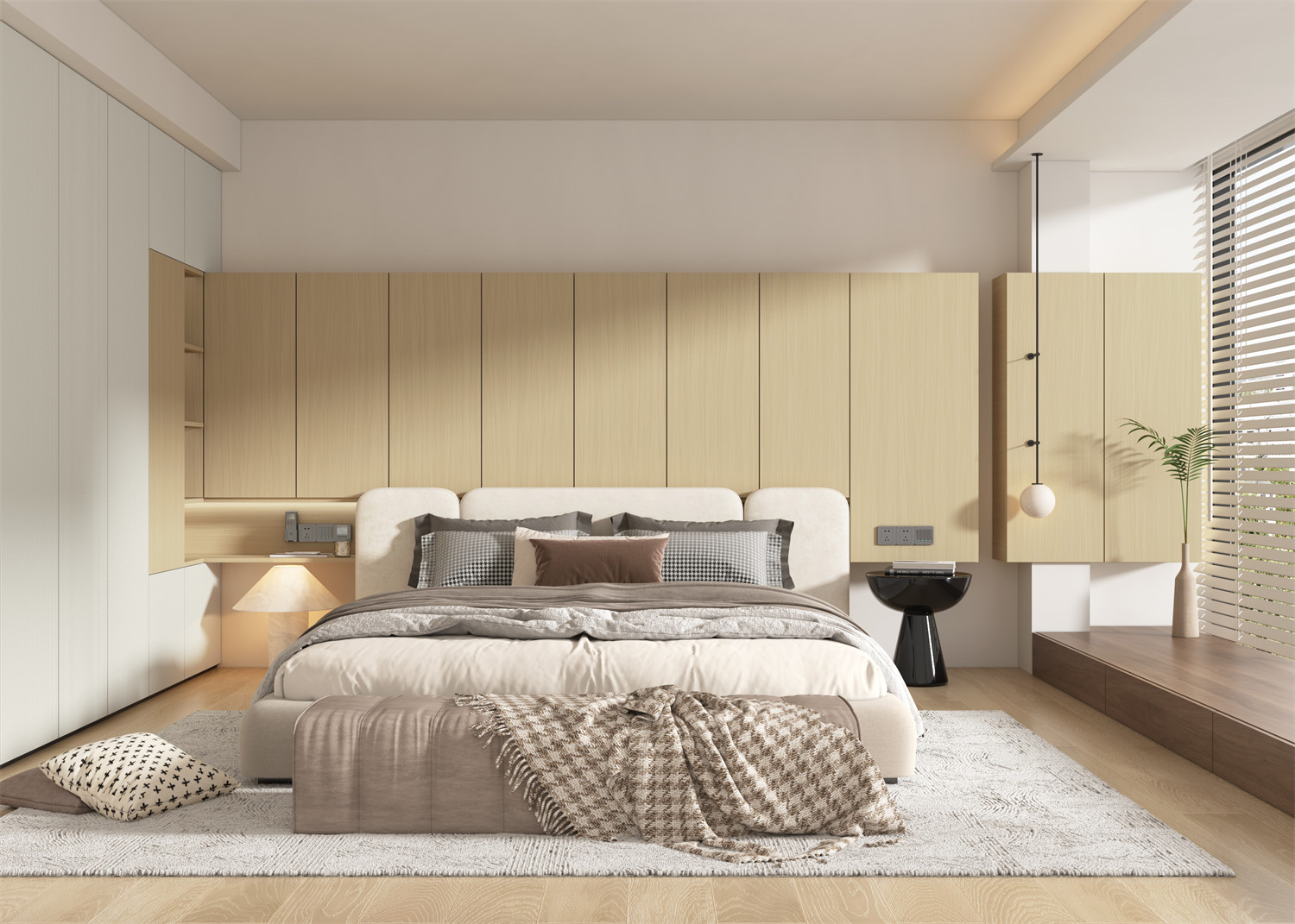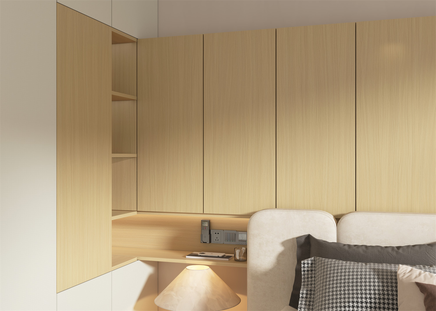 In design, the natural elm wood grain is carefully restored and adjusted. High-quality elm grain is extracted and orderly combined with straight and semi-cathedral grains to create a balanced visual effect. This highlights the natural hierarchy and beauty of the wood grain.