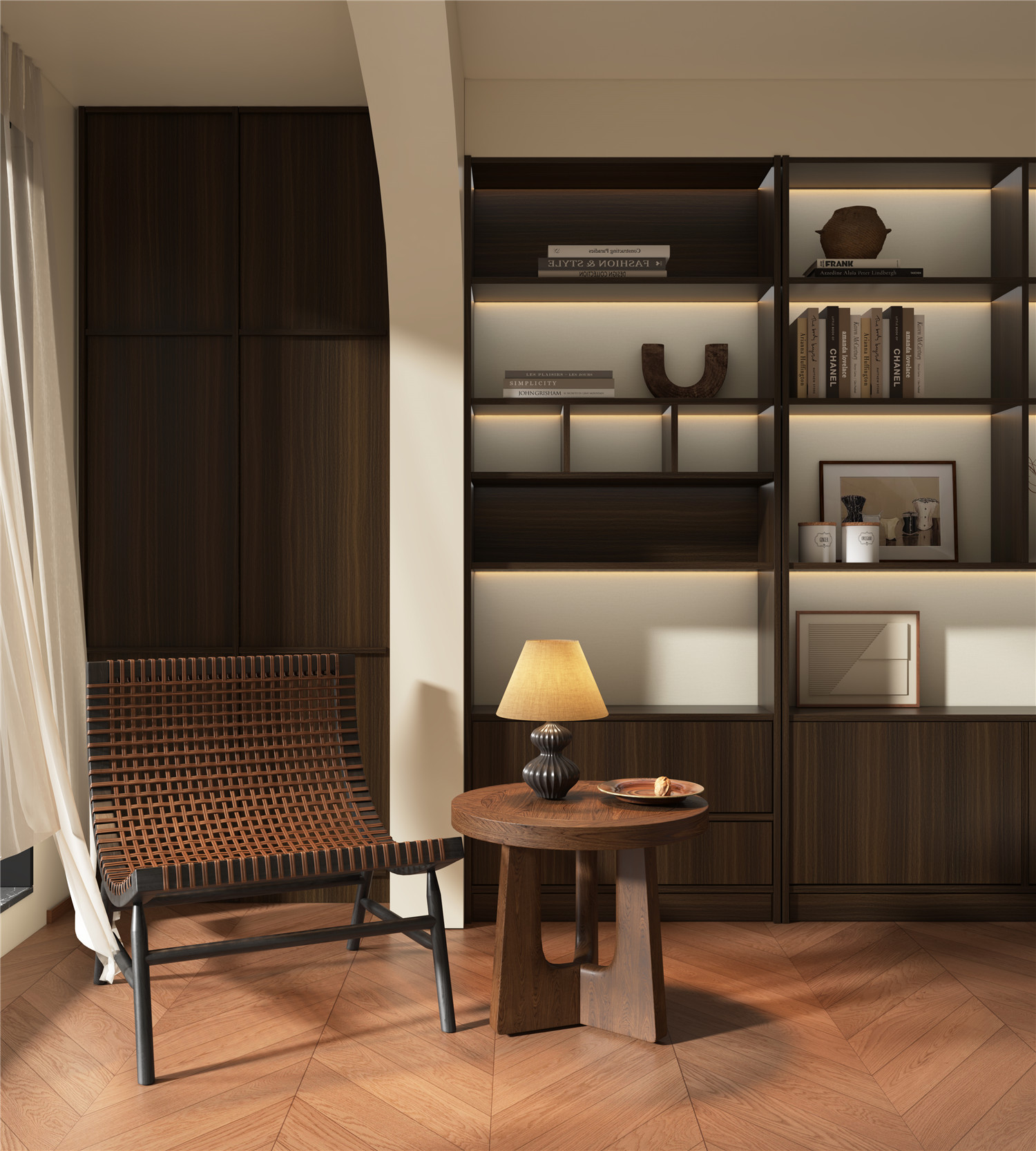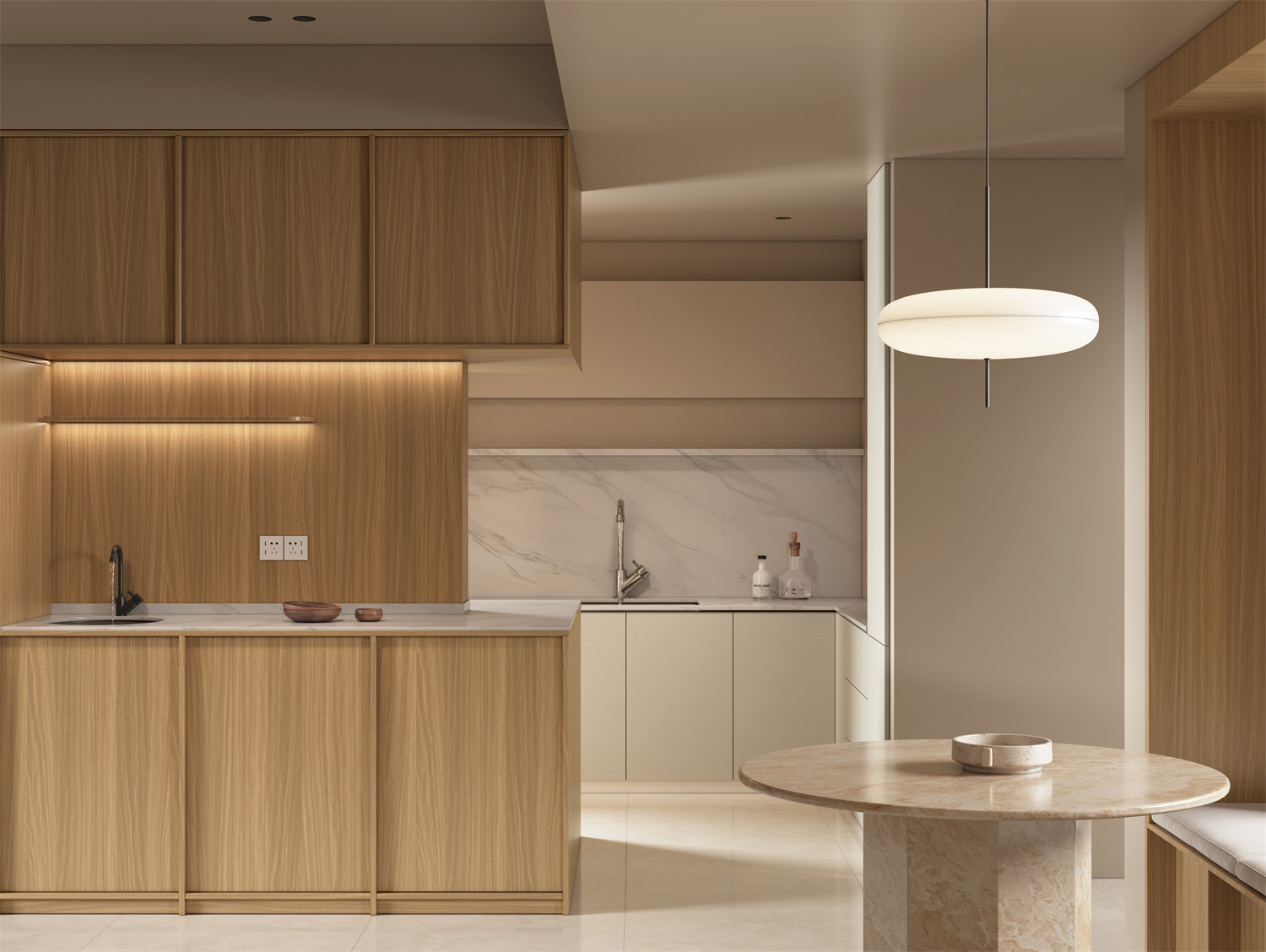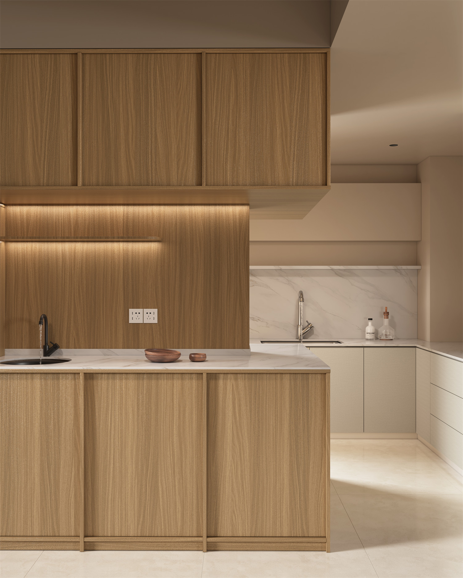 Inspired by high-end brand fabrics, faithfully reproducing the authentic fabric grain. The interwoven patterns are dense and regular. With a soft light color base that exudes warmth and tranquility, it is suitable for use as a backing or door panel. It can also shape spaces with styles such as wabi-sabi, Zen, and minimalism