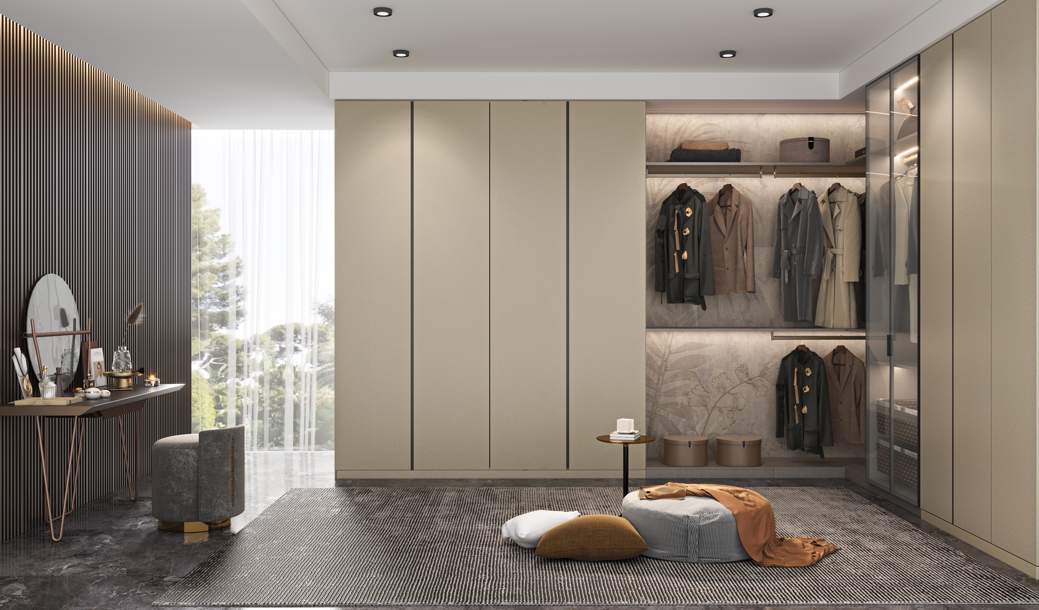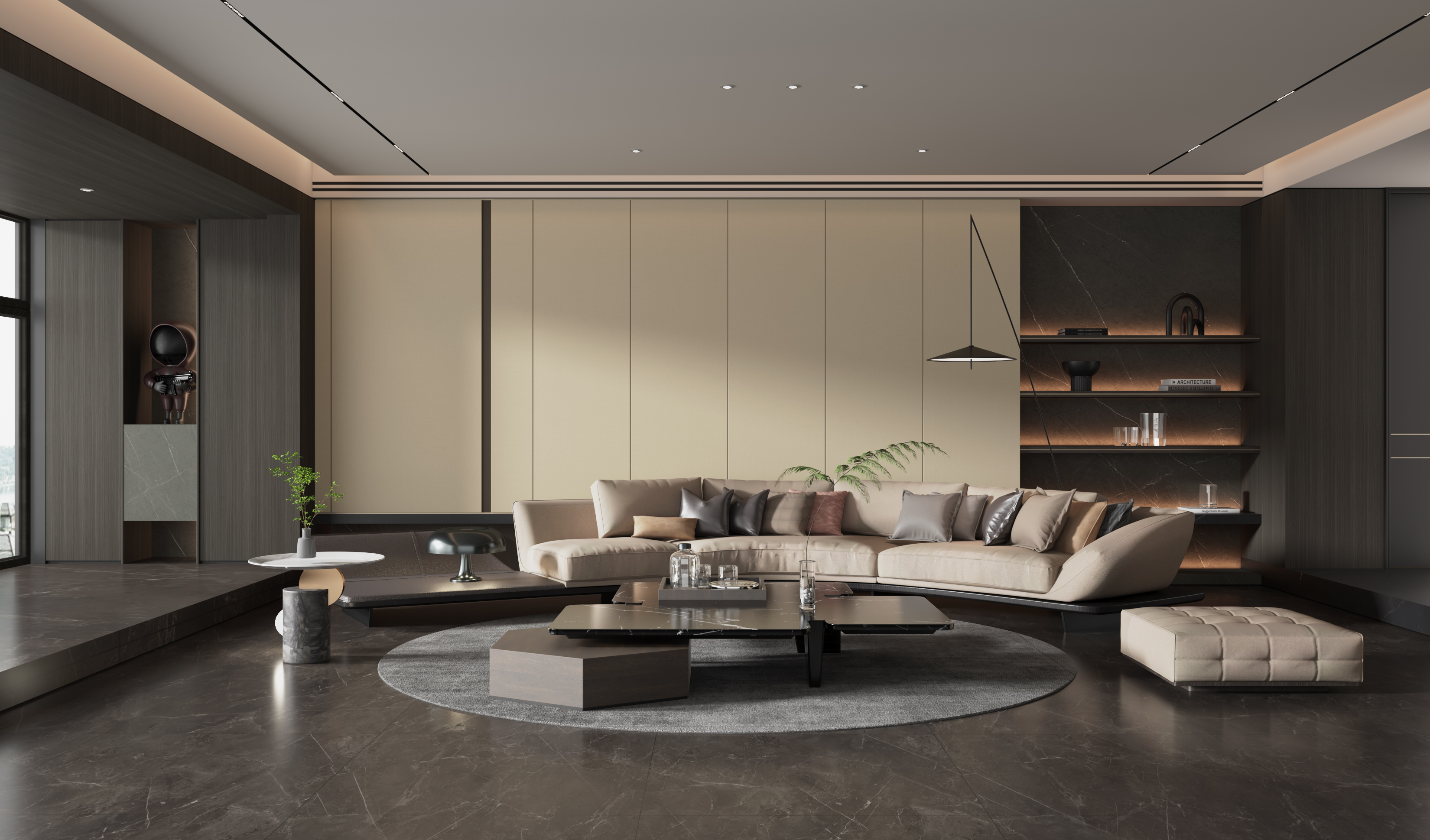 Inspired by wood and textiles, this engineered veneer features a clear, layered layout with interwoven linear textures. Subtle horizontal wave effects evoke linen-like softness, balancing technological precision with vintage warmth. Neutral tones add depth, creating a warm, refined, and expressive interior atmosphere.
