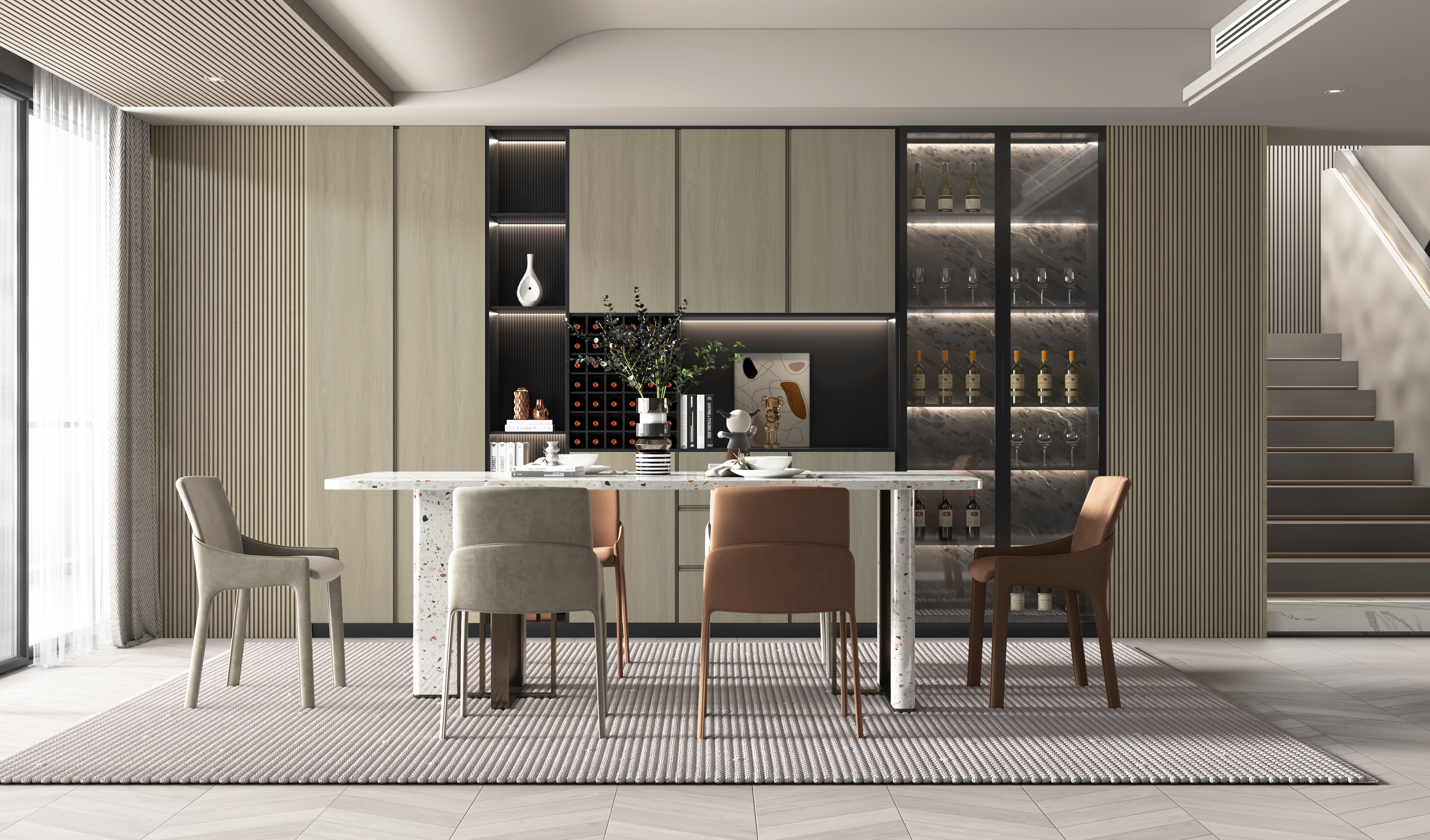This layout features full cathedrals arranged with clear flow and balanced rhythm. Refined contrast and realistic grain deliver an elegant, natural character. Rich in tone yet relaxed in expression, it suits wall panels and cabinet doors, or pairs seamlessly with solid colors for cabinetry.