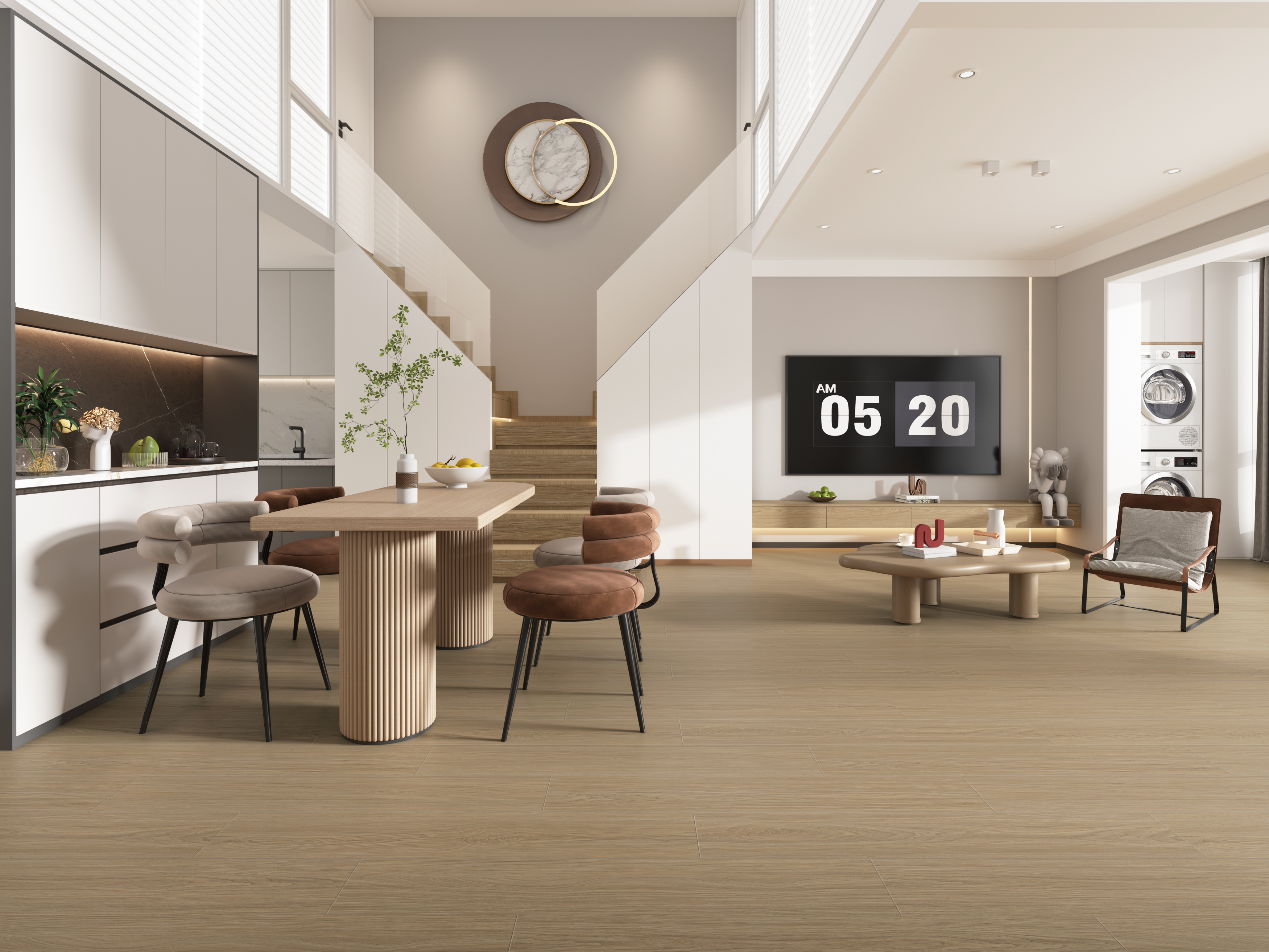 Straight structures combined with cathedrals create a clear, dimensional layout with smooth transitions and rich layering. Soft tones enhance oak’s natural beauty, making it adaptable across diverse interior styles and flexible for varied design applications.