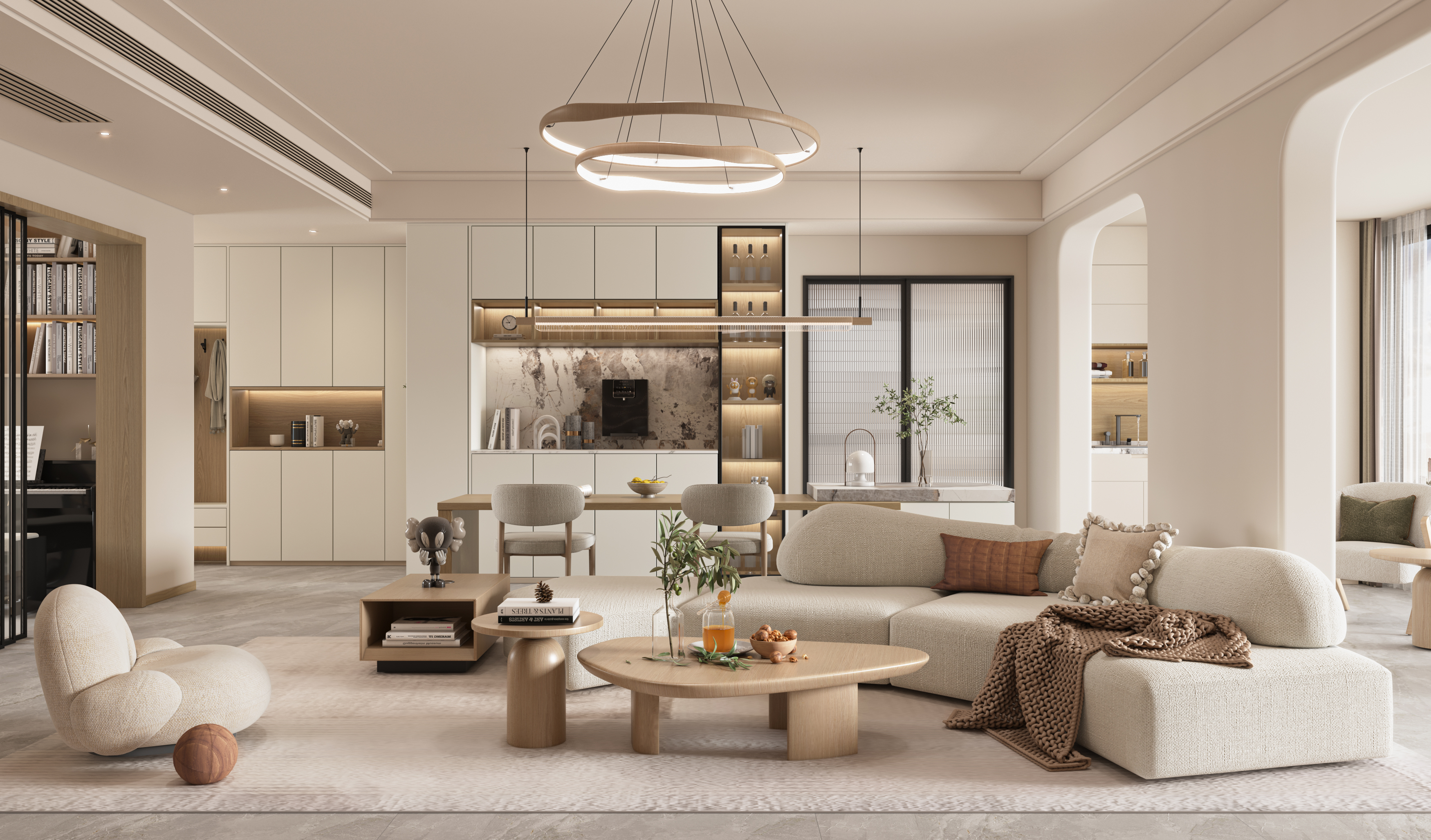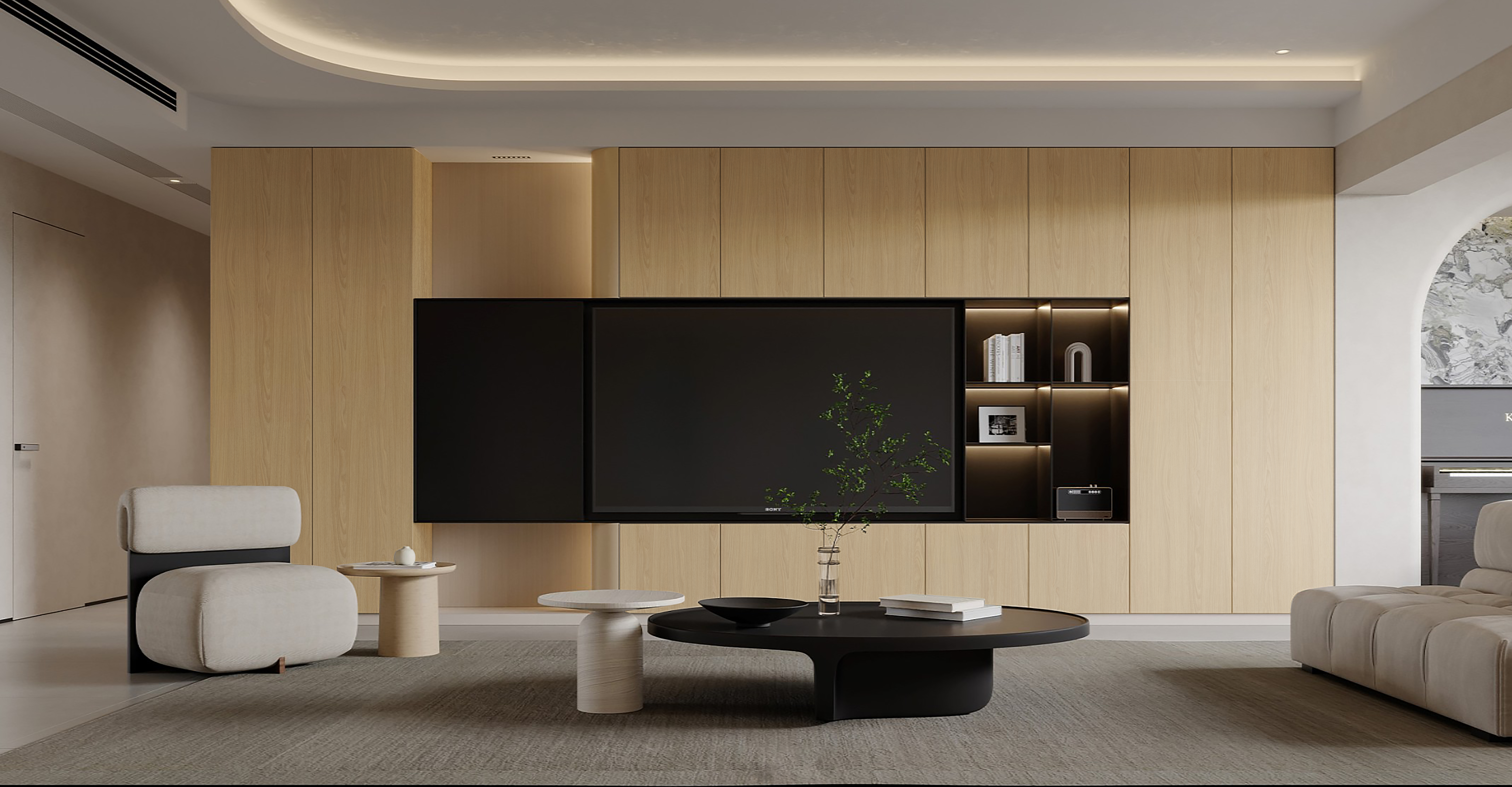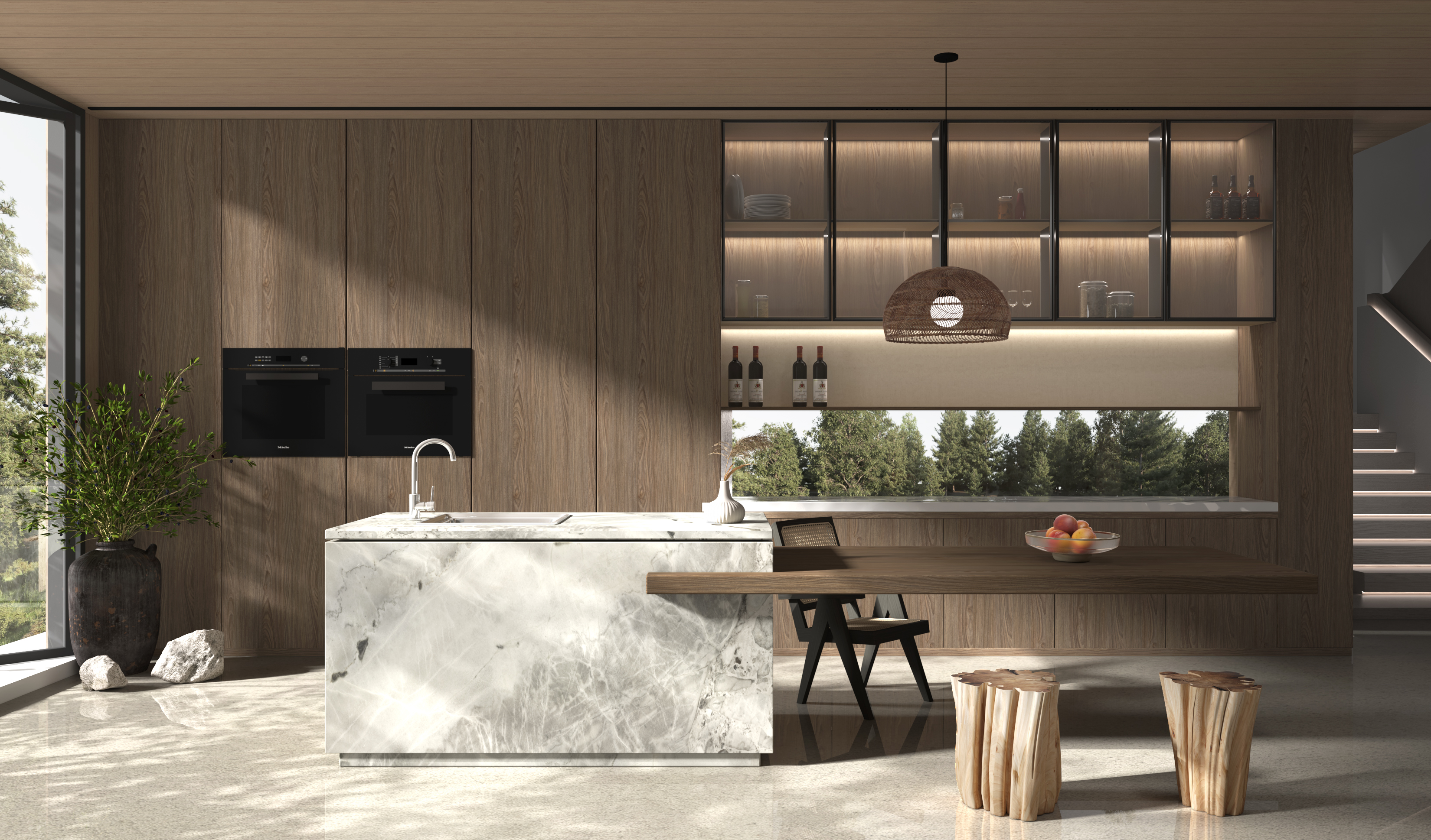 Walnut reveals its most expressive texture through large, flowing cathedrals, cascading with elegant tension. Dimensional grain details and refined color play preserve solid-wood character while adding modern appeal, blending seamlessly with diverse interior styles to create a calm, harmonious atmosphere.